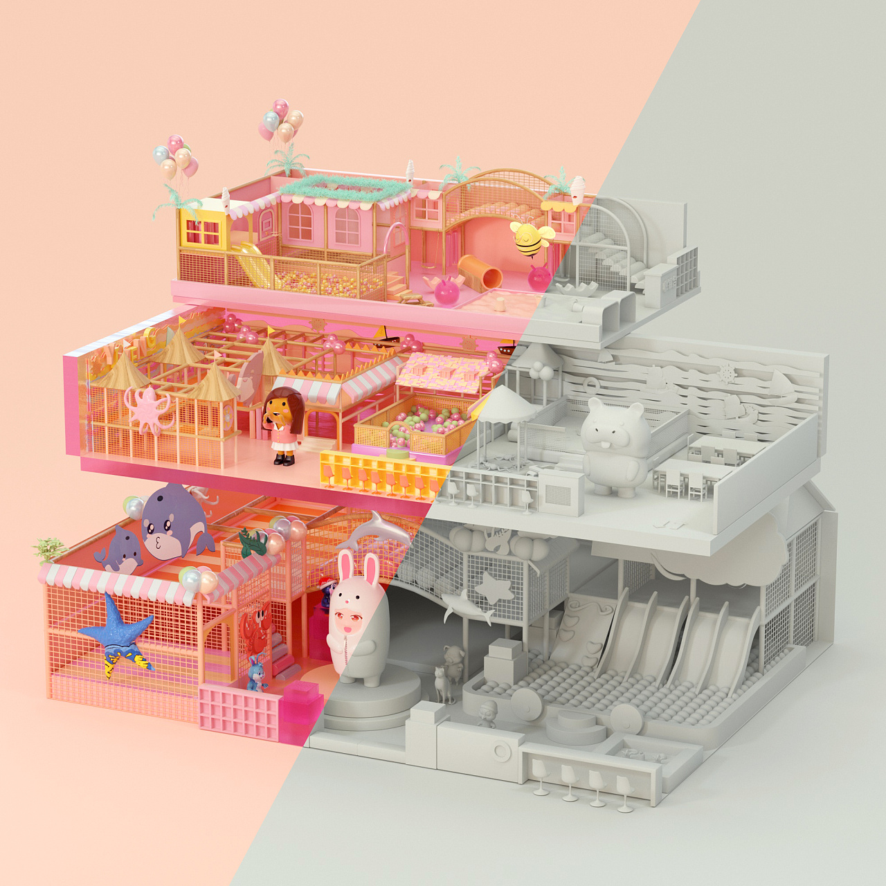 淘气堡美陈设计/专为儿童设计的一套游乐美陈方案/IP形象设计